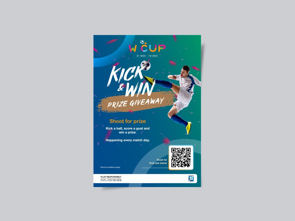 A unified thematic display across all Singapore outlets to heighten awareness of the World Cup campaign, consistently incorporating the campaign’s colours and motifs.
