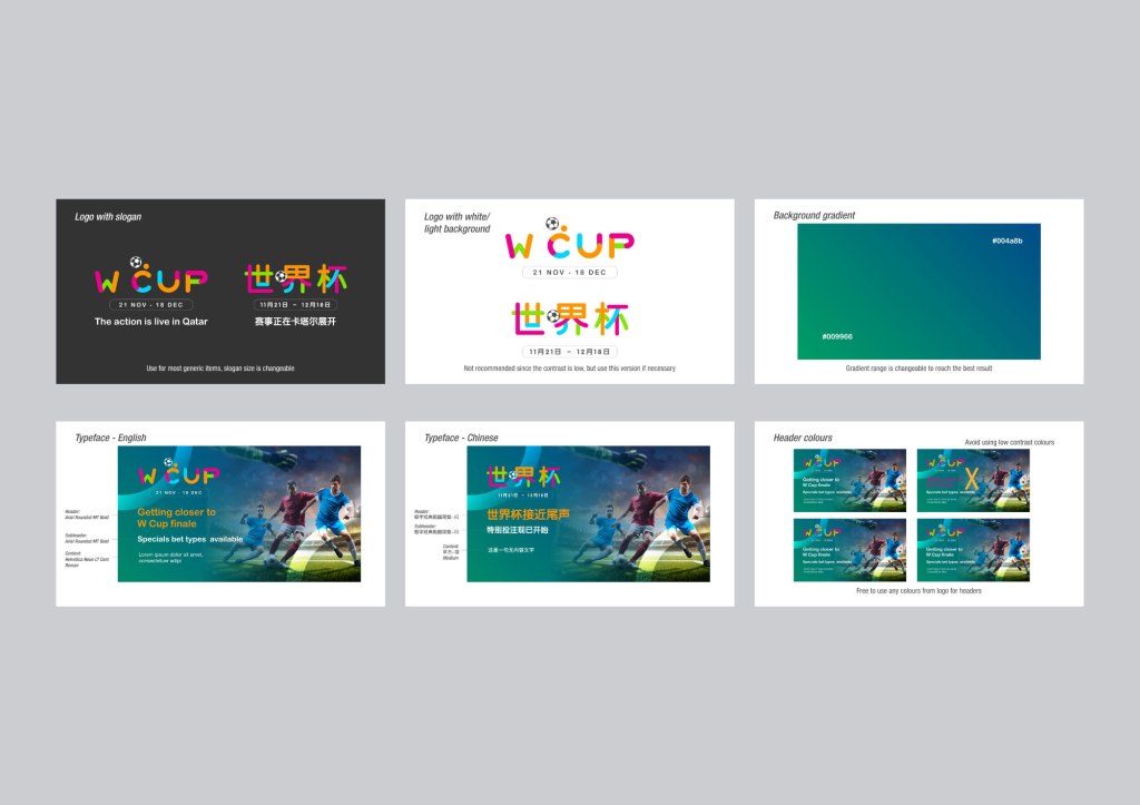 The logo’s rounded typeface conveys adaptability and concord, whilst its multicoloured palette reflects the event’s cultural tapestry. The ‘C’ ingeniously transforms into a footballer mid-play, and the blue and green hues provide striking contrast, imparting a sense of solidity and serenity.